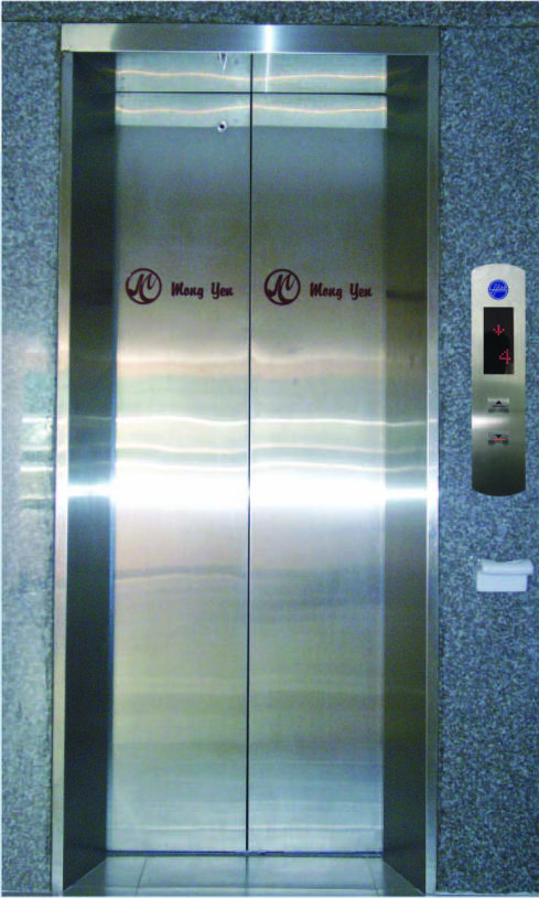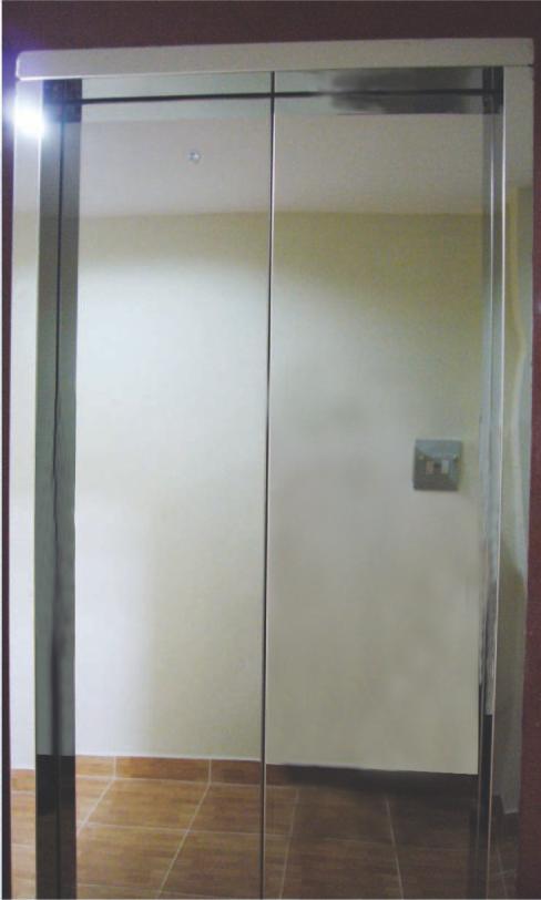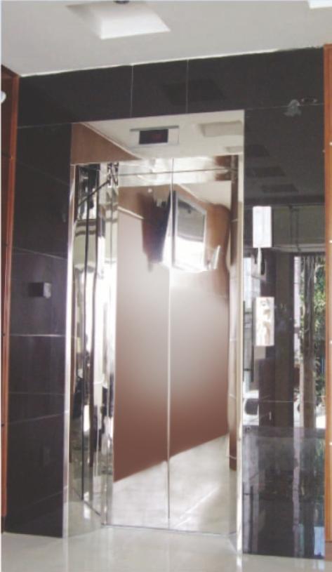 Khung bản rộng có hộp đèn: Inox gương. Cánh cửa: Inox gương
